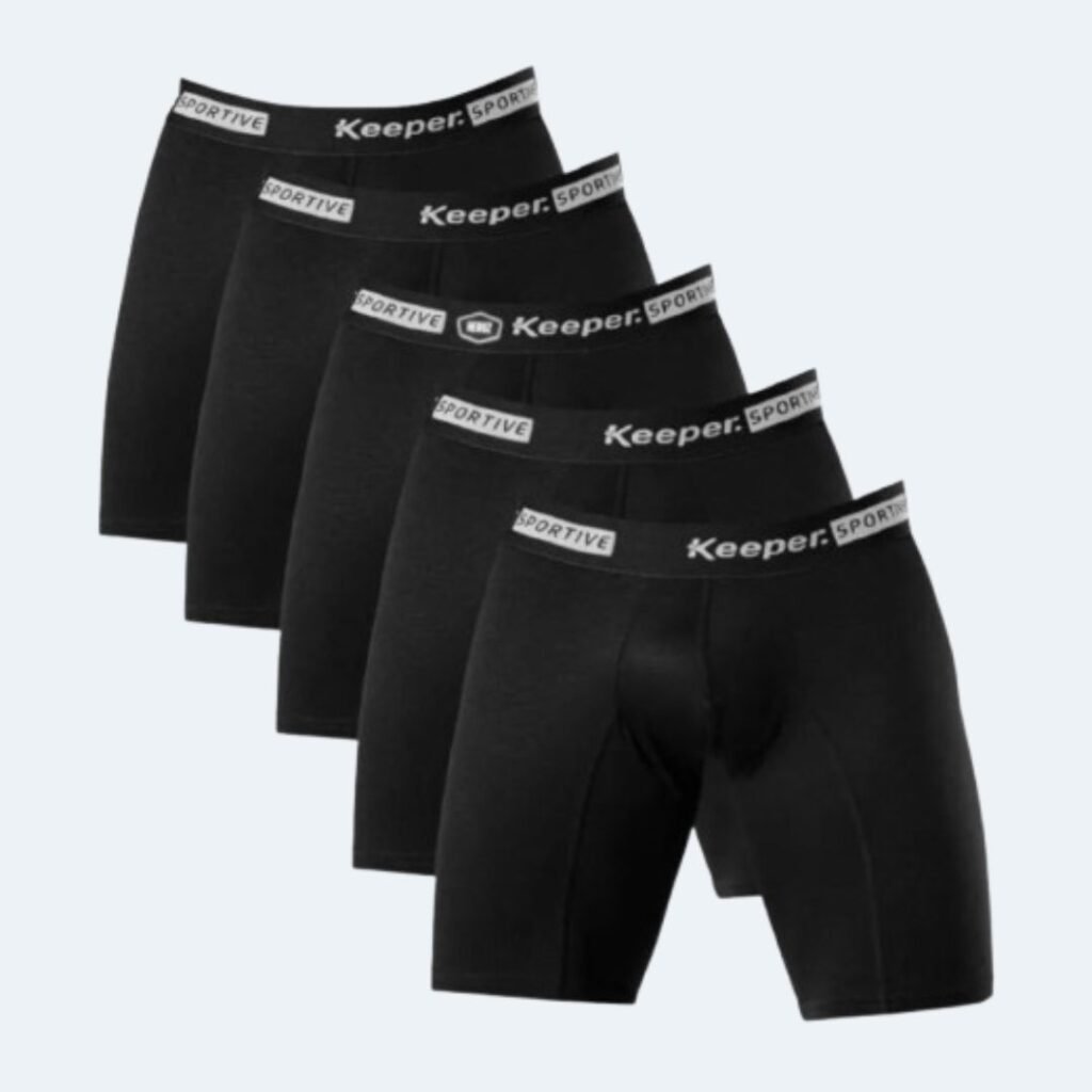 A cueca boxer longa, frequentemente associada ao uso esportivo, apresenta um comprimento maior nas pernas e ajuste mais firme ao corpo. Esse tipo de cueca masculina é bastante utilizado por homens que praticam atividades físicas ou que sofrem com atrito constante entre as coxas ao longo do dia.